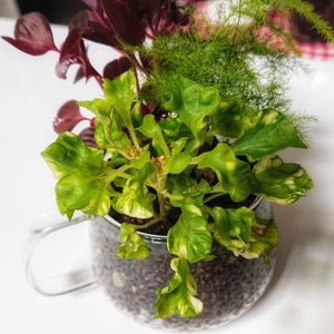 ミニ観葉植物で 寄せ植え ガラスのカップを器にしてるとこも 自己満だけど お気に入り😍 きっと旦那は気づかない (≖ᴗ≖๑)