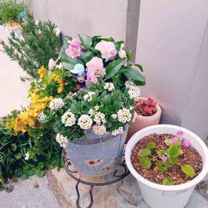 備忘録。 久しぶりにお花の寄せ植えを植え替えました。 暖冬のせいか、まさかのペンタスが冬越ししてしまい、予想外に隙間があかなかったので、半年ぶりの植え替えです。 2年目のオステオスペルマムが大きくなっていて、金魚草は返り咲き待ち、ペンタスは春夏に向けて短く切り戻したので、寄せ植えとしてはアンバランスでお見せできるような状態ではありませんが💦 植え替えたものの記録です。 ほとんど三女(5)が選びました。 IN→カンパニュラ、シレネ、フランネルフラワー、チロリアンデージー、バコパ、カロケファルス プランターの下にはびこる丸葉万年草…なんとかしたい(笑)