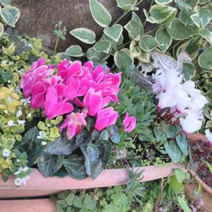 おはようございます。 ボーボーエリアで健気に咲き続ける ガーデンシクラメンさん他…🤗 ここの汚テラコッタ鉢のセンペルも ジリジリとモリッてきました😅