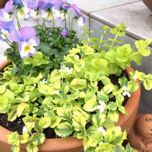 寄せ植えは難しくて、気に入った画像を持って園芸店に行ったのに、結局その時に気に入ったビオラを中心に買ってしまい、最初のイメージと違う物になってしまった。