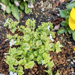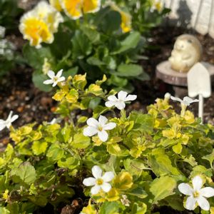 バコパ ライムバリエガータ♡ またまたの一目惚れ😍 2ポットにしたけど。 ほんとはもっと買いたかった… グランドカラーにも出来る、って書いてあったけど。 この寒空の下に出すのは、あまりにもかわいそうになり… 鉢植えにしました😌 こんなこがグランドカバーで広がると素敵よね✨