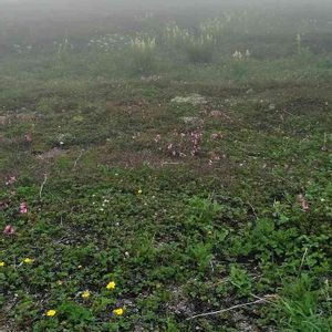 お花畑 霧が出始めました。幻想的でした。 乗鞍畳平