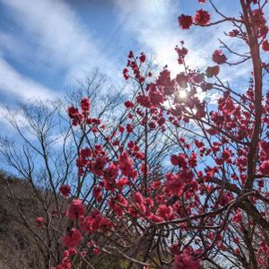 暖かい日が続いて 梅もほころんできた╰(*´︶`*)╯♡ 朝から空がシマシマでした😆