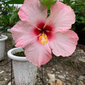 おはようございます😃 ハイビスカス、クリスタルピンクさん、開花しました🤗