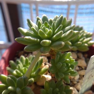 やっと冬になって調子を上げてきた子達🍀 『ウィンクレリー』 『白雪ミセバヤ』 ウィンクレリー、ブドウみたいに育ってます🌱 白雪ミセバヤさんはいい感じに伸びていたのに、夏に根元がカリカリになってきたので、挿し直しました✨ 短くなっちゃったけど、もりもりᕙ( ˙-˙ )ᕗ ⛄️❄️⛄️❄️⛄️❄️⛄️❄️⛄️❄️⛄️❄️⛄️❄️⛄️❄️⛄️❄️ とうとう冬将軍来るのですね🍃.☃︎.'.°☽😫😫😫❄ 外はものすごい風🍃🌀🍃 空がゴーゴーなってます😫 うちは住宅街のT字路の正面なので凄く風が抜けるんです😢 寒さよりこの突風が怖いです:( ;´꒳`;): ウッドデッキのポリカ屋根を剥がされた事もしばしば 突風怖いです😱 棚ごと倒されそうで、夜が心配で眠れません😭 シート類は掛けても飛ばされそう🥺 助けて〜🆘🆘😭