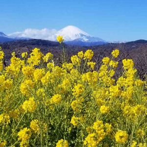 二宮町吾妻山の菜の花畑と富士山