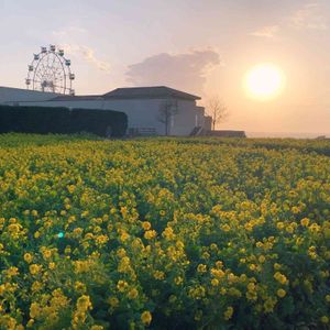 バラ園でちょっと寂しい気持ちになったのですが、菜の花畑は‼️😵‼️夕陽に輝いてました🥰❤️💕