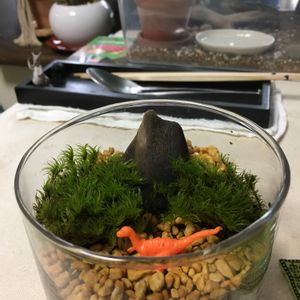 とりあえずつくってみた(´-ω-)ウム 石棚を表現してみたかったけどもう少し 大きい容器だとダイナミックに出来るん だけどなぁ💦😅 まあ初トライにしては自己評価65点って トコですかね😁 🦌さんのフィギュアとか置きたい😆