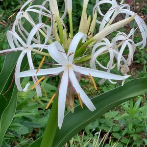 ウォーキング中に見つけました🎶 名前の由来は、花が木綿(ゆう)のように白く垂れる事からきています。 木綿(ゆう)というのは、神事のとき榊につけ垂れさげたもののこと。別名を浜万年青(ハマオモト) 本州の千葉県南部から沖縄に分布。 花言葉 : 諦めない気持ち