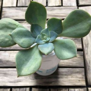 【エケベリア属 軍旗】② 別名 ファンキ・ファンキー Echeveria cv 'Funki' (アガボイデスの交配種) なかなか勇ましい名前🎌ですが、 それとは裏腹にオレンジピンクの グラデーションが可愛い🧡💗 「茎はなかなか伸びず、背が低い状態で育つ 横から仔をよく出し、増える 外側の葉はオレンジがかっており、中心部にかけて淡いグリーン 葉の形は少し幅広い 葉先は尖っており、爪先はピンク ロゼットが均等に並ぶ 涼しい時期は、オレンジに紅葉 アガボイデスの交配種で、片親は不明 パキベリアなど様々な説があり、謎に包まれた品種」 【レポスの多肉村】さんの サイトから抜粋 https://tanikumura.com/smartphone/page162.html ふるさと納税の返礼品 【唐津市 吉原園芸】さん https://www.rakuten.ne.jp/gold/yoshiharagarden/ ✏️自分用❄️越冬メモ✏️ 直射日光、風通しの良い場所を好む マイナス1~2℃まで耐え、 霜に当てても可 _φ(・_・ 【サボテンランド Cacto-Loco】 さんのサイトから抜粋 http://cactoloco.jp/dic/A426.html