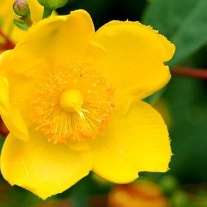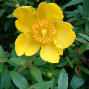 今日のお花🌼キンシバイ🌼と似ているお花 オトギリソウ科 オトギリソウ属のお花 1️⃣キンシバイ(金糸梅) 名前の由来 花びらの形が梅に似ていて、沢山の雄蕊がまるで金糸の束になっているように見える事から、中国名で金糸梅と呼ばれ、音読みをしてキンシバイ 中国原産 枝垂れた枝先にうつむき加減に咲く花 雄蕊は花びらの1/2より短くて、数は50〜70個、花の大きさ3cm内外 2️⃣タイリンキンシバイ(大輪金糸梅) キンシバイよりも花が大きい(直径6〜8cm) 別名 ヒペリカム.ヒドコート 3️⃣4️⃣セイヨウキンシバイ(西洋金糸梅) 別名 ヒペリカム.カリシナム ヒメキンシバイ(姫金糸梅) トルコ、ブルガリア原産 雄蕊は花弁の1/2より長く、数は90〜120個 キンシバイは花が全開せず、盃形であるがセイヨウの方は全開する 花弁の形は細長い 雄蕊の葯は赤色 よく似たビヨウヤナギの雄蕊の葯は黄色 花の大きさは5〜10cm 5️⃣コボウズオトギリ(小坊主弟切) 西アジア、ヨーロッパ原産 花の大きさは2〜3cm 花は小ぶりで、赤い実とのコントラストが綺麗です 切花に利用されます 園芸店ではオトギリソウ属の花を総称してヒペリカムと呼ぶ事がある