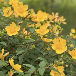 「ヒペリカム」✨🌼 2種追加です🎶 🏷️今日のお花「キンシバイ(金糸梅)」✨🌼🌿 ①②「キンシバイ(金糸梅)」 6月6日投稿⑤の「大輪金糸梅」と違い 花全体の大きさが小さめで 花びらが梅の花のような丸みがある🔍 ので、キンシバイ ですね✨🌼 オトギリソウ科 オトギリソウ属 花言葉:「きらめき」「悲しみは続かない」 ③④ 「ヒペリカム・サンバースト」✨🌼 雄しべがこんもり丸い可愛い花💕 初めて見ました🎶🤗 オトギリソウ科 ヒペリカム属 ✳︎「キンシバイ(金糸梅)」の仲間 ✳︎ 「ヒペリカム」は オトギリソウ属の総称で、ビヨウヤナギ や キンシバイ、薬草として利用されてきた オトギリソウ など数百種類がある🧐