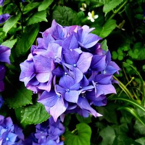 散歩で見つけた青紫のアジサイ。 この色、好きだな~。