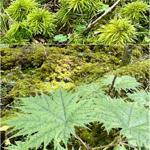 🏷苔祭り 🏷8月10日は苔の日 1日遅れでもう一枚参加させて下さいネ😊 山野草が咲き乱れる入笠湿原や 登山初心者🔰でも手軽に山頂ヘ登れる入笠山は大人気で賑わっていますが 山頂への登山口を過ぎさらに進んだ処にある大阿原湿原。 入笠湿原と比べて古い湿原とのことで、乾燥してきていて樹木も育っています。 訪れた時は、ズミの花やエゾノコリンコ゚が満開でした。 木道が整備されており、グルっと一周30分くらいです。 山野草の花は少ないせいか、訪れる人も少なくのんびりと散策できます。 何より、苔好きにはたまらない😍散策タイムが過ごせます💚 先日投稿した、ハリブキの下は 苔の絨毯で覆われていました。 もしかして、、、 ハリブキは、苔のボディガードかも😏👍 【ハリブキや光遊ばす苔清水】 いざよい
