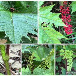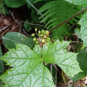 ハリブキ(針蕗 )ウコギ科ハリブキ属 落葉低木。 雌雄異株。 葉がフキに似て大きく、全身に針があるための名。 9月15日 場所:八ヶ岳山麓 稲子湯(標高1,460m)⇔しらびそ小屋(標高2.097m)の登山道