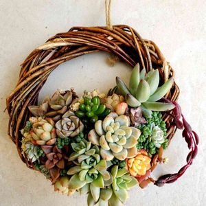おはようございます☀ 多肉リース🌵 隙間が気になり出したので仕立て直しました(*^^*)🎵 かなり詰め込んじゃいました💦