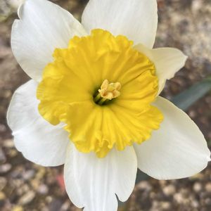 一昨日蕾だった水仙 4月11日の姿 咲いたら こんなんやったꕤ.·*. これがあの蕾の中に収まっていたのだと思うとすごい✨ 多少 クシャクシャのティッシュぽい気もする ( •̀∀•́ )b