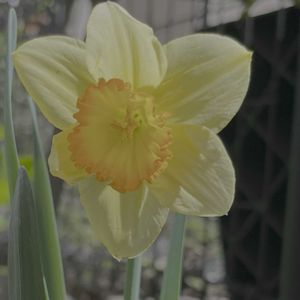 🍀🌻🪴💐🌹🌻🍀 🍀💛🧡スイセン・ ガーデンジャイアント🧡💛🍀 💐水仙の花言葉は(うぬぼれ)、(自己愛) (私のもとへ帰って)、(騎士道精神)、 (愛に応えて)などがあります 💐ガーデンジャイアントはヒガンバナ 科 スイセン属の植物です 💐原産地はフランス、スペインで、開花 時期は2月~04月初旬頃、花色は黄色 です 💐花被片(花びら)は、幅は広く、色は黄 色、 中央部のカップ状の部分(副花 冠)は、ひだ状で淡い紅色、先端周り は濃紅色、 花径は10cmほどです 💐花期は3月下旬~4月中旬、草丈は30 ~45cmほどで 葉は平たく線形です 🍀🌻🪴💐🌹🌻🍀