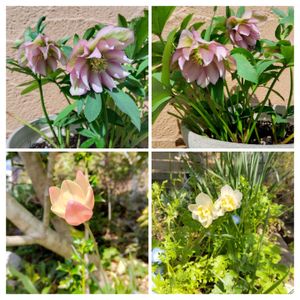 こんにちは😊 今朝は寒かったのに昼間はポカポカに☀️ 少し花がら摘みをしました。 ①クリスマスローズ🥀 濃い紫色の子だったと思っていたのですが、こんな淡い色で咲きました。 原種チューリップ🌷は今年は1輪しか咲きませんでした。 水仙も2輪咲き始めました。 ②③ジューンベリー リージェンシーの花が咲きました🤍🌿