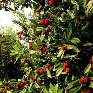 【Yield!!Harvest!!】 ヤマモモの実が豊作です!! すっごーい!! 枝が垂れて赤い実から甘い香りがしてきました! (地面がすごい惨状になってます)