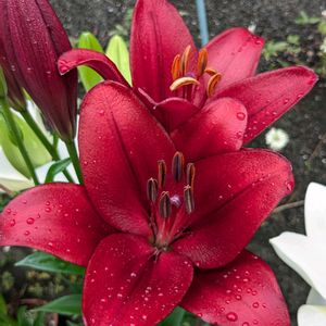 今朝、すかしゆり🤍❤️の色が咲きました😃😄😁✌️ 3色揃って綺麗💕です◌˳⚛˚⌖.。(ღˇᴗˇ)。o.:*˳⚛˚⌖ウットリ ステキ💕💕