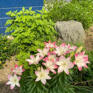 コミュニティ花壇 梅雨の晴れ間🌤️ スカシユリのシュガーラブが 咲き揃いましたよ‼️🤗💕✨🎶