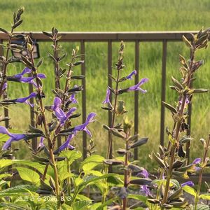 🌼お花便り 【#サルビアロックンロールブルーティアーズ 】 🗓️定植2024-10/13 → 2025-8/3 (42w0d) 🧭南西 🪴半地植え6号1株 ☀️3時間 🚿雨のみ 🧴花壇の元肥 🚿水やりを終え洗濯を干したAM5:48 サルビアのお掃除に行くと可愛らしいお客様🐸が朝日を見つめていたのでそーっと撮影 お掃除に行ったのにお客様のお邪魔しては悪いのでせず🐒💦 仕事から帰宅した12:03📌④⑤もう37℃…花がらなんてついて無いよね🙈と言い聞かせてマッハで撮影して来ました🤣 #pwスーパーアンバサダー2024 秋で頂きました#サルビアロックンロール #サルビア 🐵フェンスの奥は田んぼなんだけどその向こうに道があり、その先に数十軒新築のお家が建つから部屋から見えていた花火が、来年は花火欠けちゃうかな?って心配してたけれど見られそうです🙆🏻♀️ でも河原から打ち上がる瞬間は見えなくなっちゃうかな…🐒