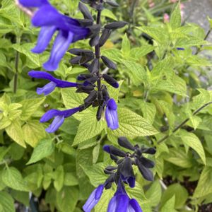 PW サルビアロックンロール ブルーティアーズ 5月半ばにお迎えして3ヶ月半 随分大きくなりました🌱 お迎え時のポットは10.5cm この鉢の直径は45cm 1株でここまで大きくなります 改めて見るとビックリ まだ草花風だけど冬越しするとほぼ低木になるようです うん なりそうなりそう