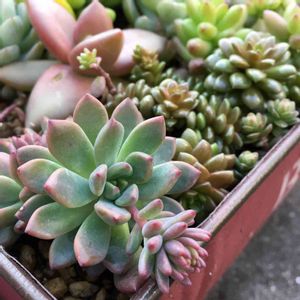 多肉初心者どころか園芸初心者です。 会社近くの花屋さんで3つで200円でした。 営業先から会社に戻る時に店の前通り、思わず買ってしまいました。名前もわかりません。 ゆっくり育ててみようと思います。