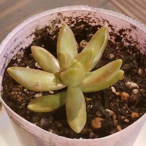 多肉植物を始める余裕はなかったのですが、娘の「私、サボテン🌵がいいなあ」の一言で、多肉植物を4つ購入😌 その1です😅名前は「メイゲツ」と書いてありました😁 金欠のため、100円ショップで購入しました😜
