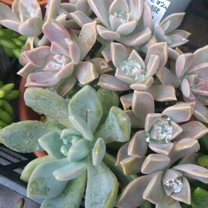 グラプトペタルム属 朧月 朧月丼に珍客が❗️ どんどん大きくなってる😳 朧月さん 軒を貸して母屋を取られるわよ😁 追記 投稿時、セダム属と書きましたが グラプトペタルム属と訂正しました。 また、やっちゃった😥 AOAさん、教えてくださってありがとうございます😊