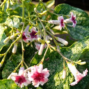 今日のお花🔸ヘクソカズラ🔸 ①② 隣りの塀のところに絡まっているヘクソカズラ🌿 ウイルスが入ったのか、葉が白っぽくなって斑入り様になっています✨🤍💚✨🤗 ③ 別の所のヘクソカズラ🌿 あちこちで見かけますが、花の大きさも中央の赤い模様もそれぞれ個性があって、面白いです💗🎶