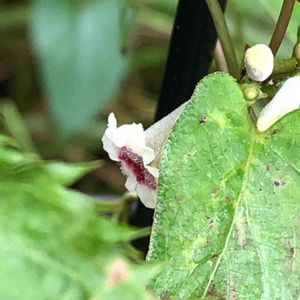 あら、あなたは⁈ 嗅がずとも可憐なお花ですぐわかる。白に小豆色の絞りが映えます。母の家の生垣に落ちていました。 ここで、おきょうさんのダブレットに挑戦。ズルして前三文字で😅お題は「同情から共感」へ。 屁糞カズラ➡︎馬糞カズラ➡︎目糞カズラ (クソから離れなきゃ💦) ➡︎染め師カズラ➡︎おしめカズラ (また下ネタに💦) ➡︎乙女カズラ GSで知ったこのお花、ネーミングをサオトメバナ1本に絞ってあげたい。