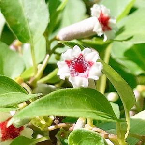 日光市今市運動公園体育センターの、サツキの垣根に絡まり、たくさんのつぼみと、とても可愛い💕😍らしい花を咲かせる、名前が似合わない、ヘクソカズラの花❗️ ガラス細工のウサギ さんが、サオトメバナと言う、優しいステキな呼び名があることを、教えてくださいました❗️ ありがとうございました😊