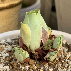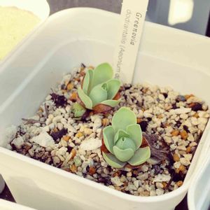 お目覚め✨ グリーノビア ギガンティア、オーレア ピンクは抜けちゃいますが、グリーンのロゼットが美しいです。 やっと外に出てて気持ち良い、多肉が楽しい季節到来です🎶 …の、前にダニーにやられた株の処理とか日焼け組や徒長組、崩れちゃった寄せ植えなどの片付けから始めます…… あー…えらいこっちゃ…(見ないようにしてたツケです)