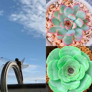 ちょっと詰め込みすぎたかしら😜 順番にご紹介しま~す❕ ↖️ お目覚めの黒法師。去年の方が可愛かったな😅まぁ、元気だから良しとしよう🎵 ↗️こちらもお目覚めオーレアさん。1枚1枚開いていくのかな?思ってたのと違う…過酷な夏を乗り越えてくれてありがとう😆💕✨葉っぱがあるので安心だ。ここには載ってないけど亀甲竜は休眠中は🌿は枯れて根塊だけになるから心配だ。早く芽を出しておくれ❗ ➡️ 寄せ植え練習中😃シンプルバージョン。 ⬅️ 台風避難で2日間車庫(日陰)にいたせいで拗ねてしまった高砂の翁。つい先日までは可愛いキャベツ型だったじゃない‼️ ↘️ たくさん咲きだしたシュウメイギク🌼去年、白とピンクを植えて、ピンクは順調に育ってる。白は葉っぱしかない⤵️来年期待してるよ。死なないで❗頑張って👊😆🎵
