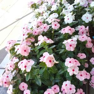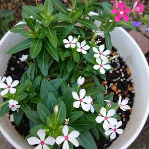 我が家の日々草 消えたと思ってた藤色が咲き 白は2種とも元気💞 長いことありがとうね~