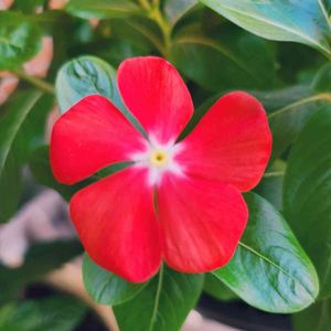 ニチニチソウ 夏時雨 絞り柄の中に、単色の花が出てきました。原種戻り❓