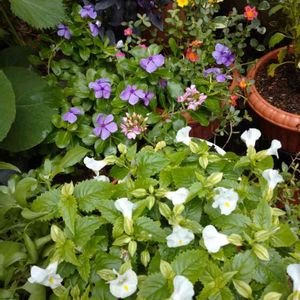 値下げ品のアルテルナンテラとニチニチソウを取り急ぎ寄植えしておいたら ジャングルみたいになりました。