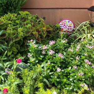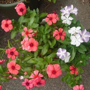 《ニチニチソウ》 お出かけ先の 花壇に咲いていました❗ 色とりどりです✨