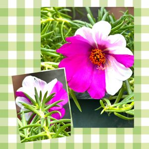 こんにちは☀️ 大輪マツバボタン。 毎年可愛く咲いてくれますが、一鉢になったから、2本挿し芽しました。 昨日は白、今日はこの色が咲きましたよ! 黄色のマツバボタンと一緒に記念写真です!