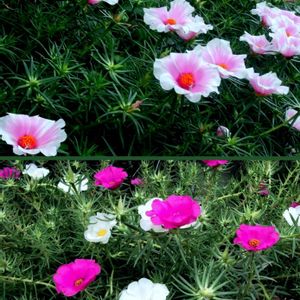 こんにちは⚡️☔️⚡️ 昨日の白い大輪マツバボタンと同じ株から白とピンクのミックスのが咲きました! 裏表見てね! 朝、部屋の窓からピンクの花が見えたので、びっくりしましたよ。 これからどんなのが咲くのか楽しみです♪