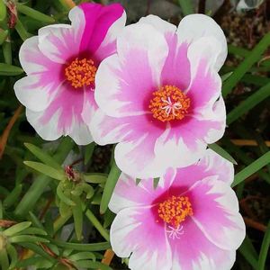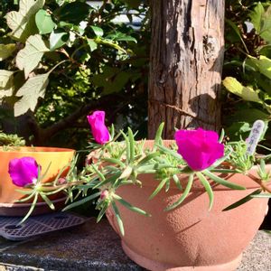 8/2(金)③ ツートンカラーの大輪マツバボタンと、八重咲きのマツバボタン。 これは去年の写真です😆🎵🎵