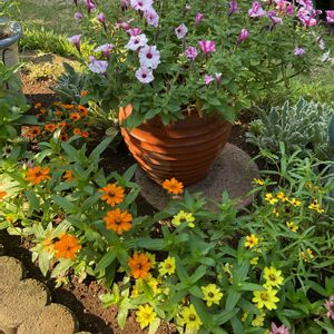ウチ🏠の小さな庭のお花達🌸 今日3投稿目です😅💦 ①素敵なペチュニア🤍💚を見つけてしまい、植えています。 育てるの苦手なのに、またまた見切り品だったのでお迎えしてしまいました。 タグ🏷️が無かったので調べてみると、『純翠』というペチュニア🤍💚 もしかしたら『クリームソーダ』かも?💦 とにかく爽やかなお色💚🤍が気に入ってます👍✨ ②③その同じ鉢に植えている極小のお花達💜💛 ②は『スコパリア』(ブルーメロン🍈)、③は『スコパリア リトルチュチュ レモンミスト🍋)⁈ 初夏の頃にお迎えしていながらずっとポット苗🌱のままでした😅💦 最近やっと植え付けてモリモリ咲くようになり、ホッとしています😌 弱々しくて繊細な感じですが、小花好きにはたまりません💓💓 ④コレは去年から置いていた鉢。 大輪『マツバボタン』🩷が咲きました❣️ 亡き父👨がくれた花🩷。 ダメ🌟になったと思っていましたが、生き返って…いや、生き残っていたんでしょうか?実家にも植わっています。 大切にしなきゃと思います😊✨ ⑤コレも何年か前のバーベナ🩷 必ず忘れずに咲いてくれるのがありがたい。 今日も暑かったですね🥵💦 とても昼間には出られなくて、朝の水遣り🚿だけしました。 夕方も家で用事をしていたら暗くなってしまい、出来ませんでした😅 明日の朝はたっぷりお水💦あげるからね〜💕