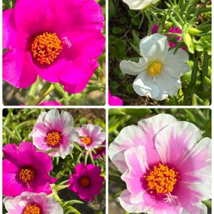 雄しべ、雌しべが可愛い花たちです。 ①②マツバボタンピンクと白。 ③サルスベリ(百日紅) 🏷️元気をもらう花々