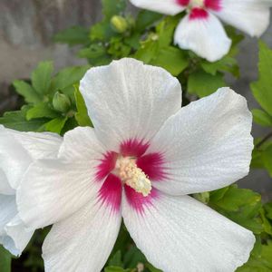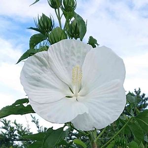 ムクゲ 一重咲き大輪の真っ白なお花 元気よくお空に向かって☁