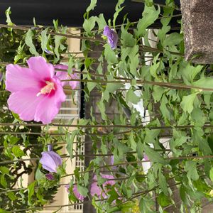 紫のムクゲです。 ムクゲは葉っぱも花も虫がついて食べちゃうし見た目も汚なくなるからツマンナイ😩と思っていたけど、やっぱり好きな花なので去年にお迎えしたものです。 世の中、イロイロ問題がありますが癒される幸いに感謝です💗 皆様の今日が穏やかでありますように☘️