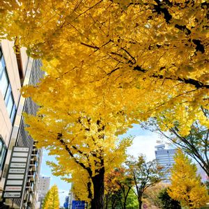 今日の午前、市内を散歩途中に見かけたイチョウ。
