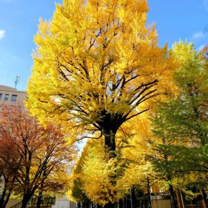 今日の昼頃、市内を散歩途中に見かけたイチョウ。