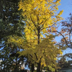 こんばんは。近所の神社の古いイチョウ、きれいに色づいていました。